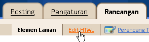 7. Sekarang masuklah ke Elemen Laman. Lalu klik Edit pada Gadget HTML/Javascript atau pada gadget html yang telah dibuat sebelumnya (seperti yang telah dilakukan pada Membuat Menu di bawah Header).